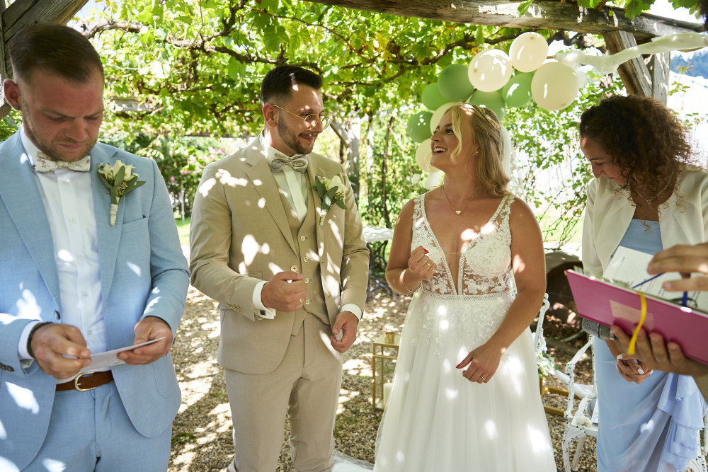 Ich habe mich mit Alica & Stefan auf dem Weingut Franz Xaver in Buchholz bei Waldkirch zu ihrer Hochzeit verabredet. Ziemlich schnell wurde mir klar, auf welcher Hochzeit ich da war. Alicia & Stefan wollten tanzend und lachend durch diesen tag gehen und das hat mich angesteckt. So viel Lebensfreude und Spaß – das war definitiv auch ein Glücksgefühl für mich. Die Beiden haben durch ihre Fröhlichkeit und Unbeschwertheit diesen Tag auf wundervolle Weise gestaltet – und das hat man gespürt.